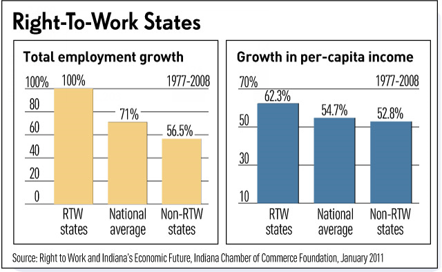 There will always be unions in Indiana and all of the other Right-to-Work states. The difference is, the unions in the Right-to-Work states have to be more responsive to the needs of their members and have to provide real value to earn their dues dollars. In the Right-to-Work states, the employees are free to choose whether or not they want to pay dues to a union.