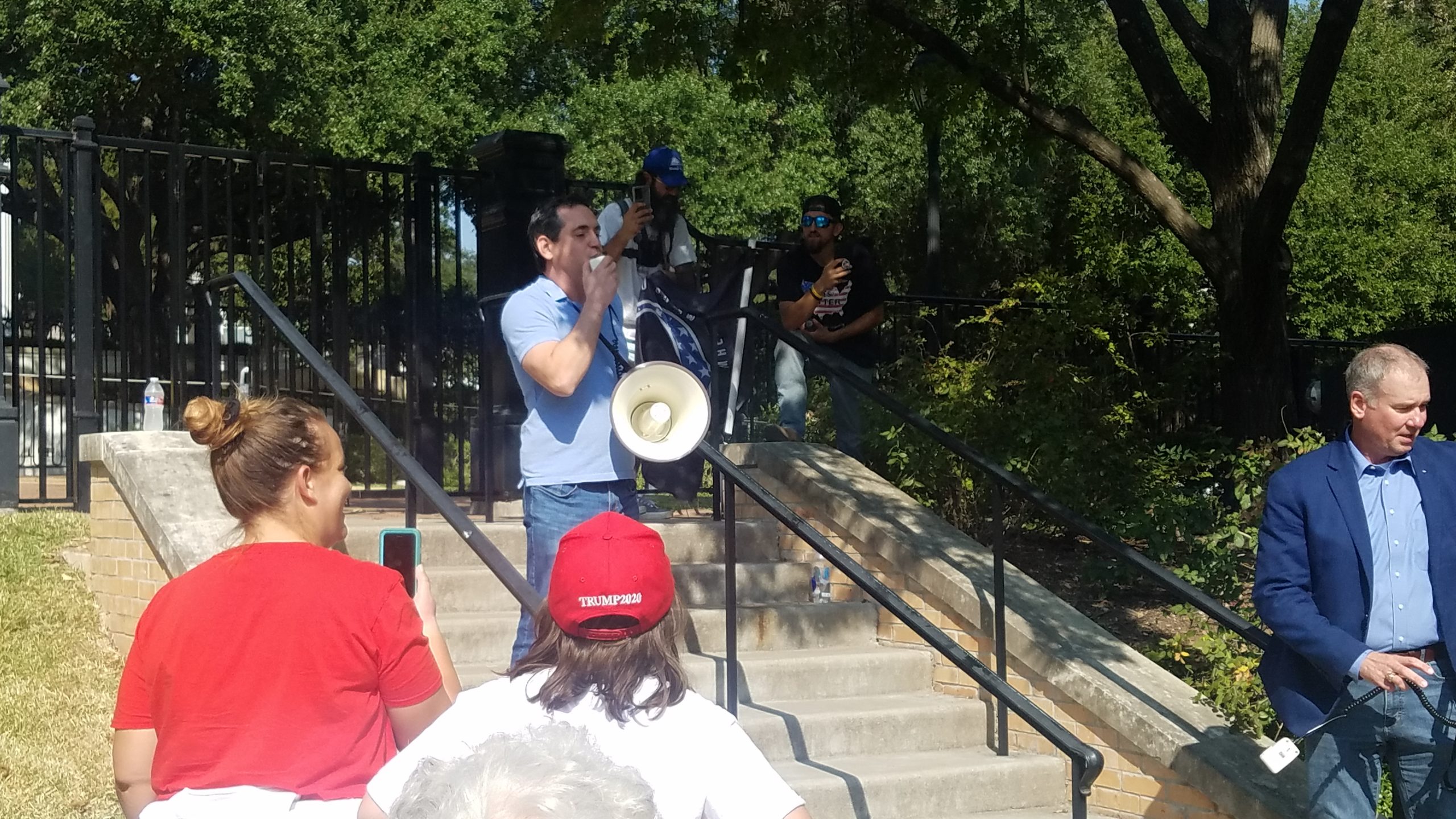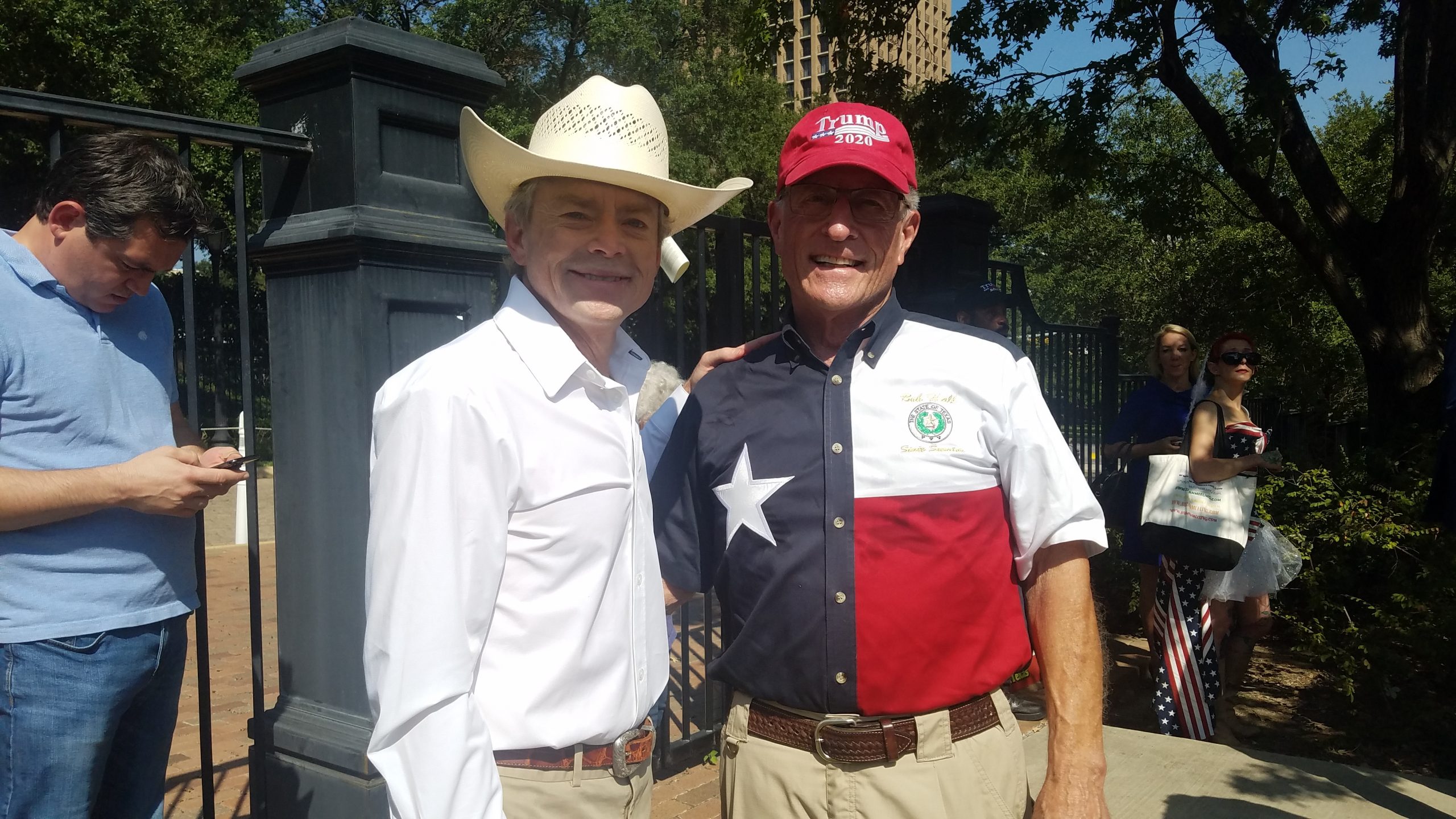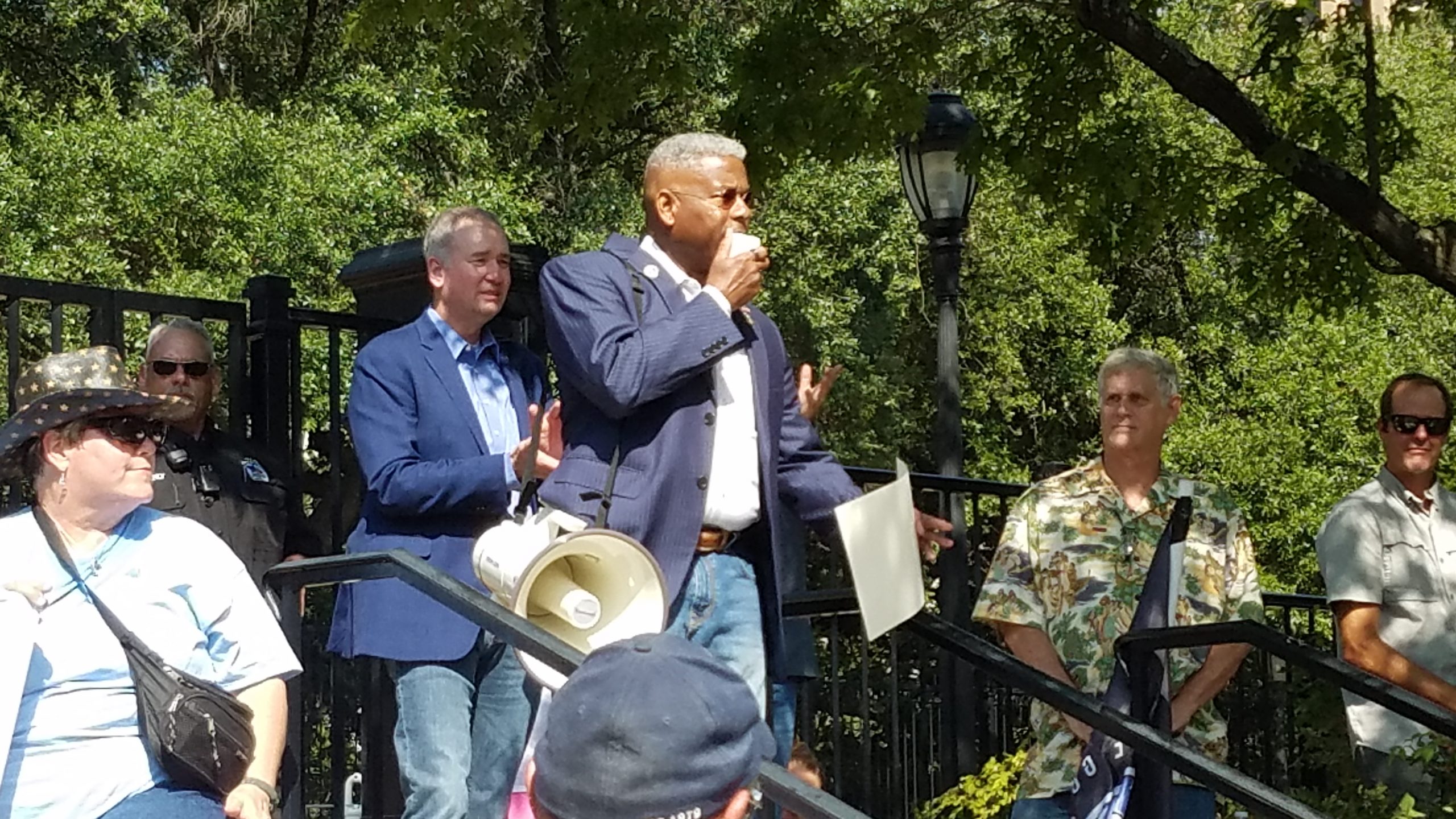 Even the chairman of the Republican Party of Texas, Col. Allen West came to the event to speak. Col. West brought a copy of the resolution passed by the State Republican Executive Committee 58-4 demanding that Governor Abbott end all COVID-19 restrictions and mask mandate and left the copy in the gate leading to the Governor’s Mansion. Many members of the crowd also shouted, West, Huffines, and Rinaldi for Governor, each of which downplayed the speculation, at least for the time being.