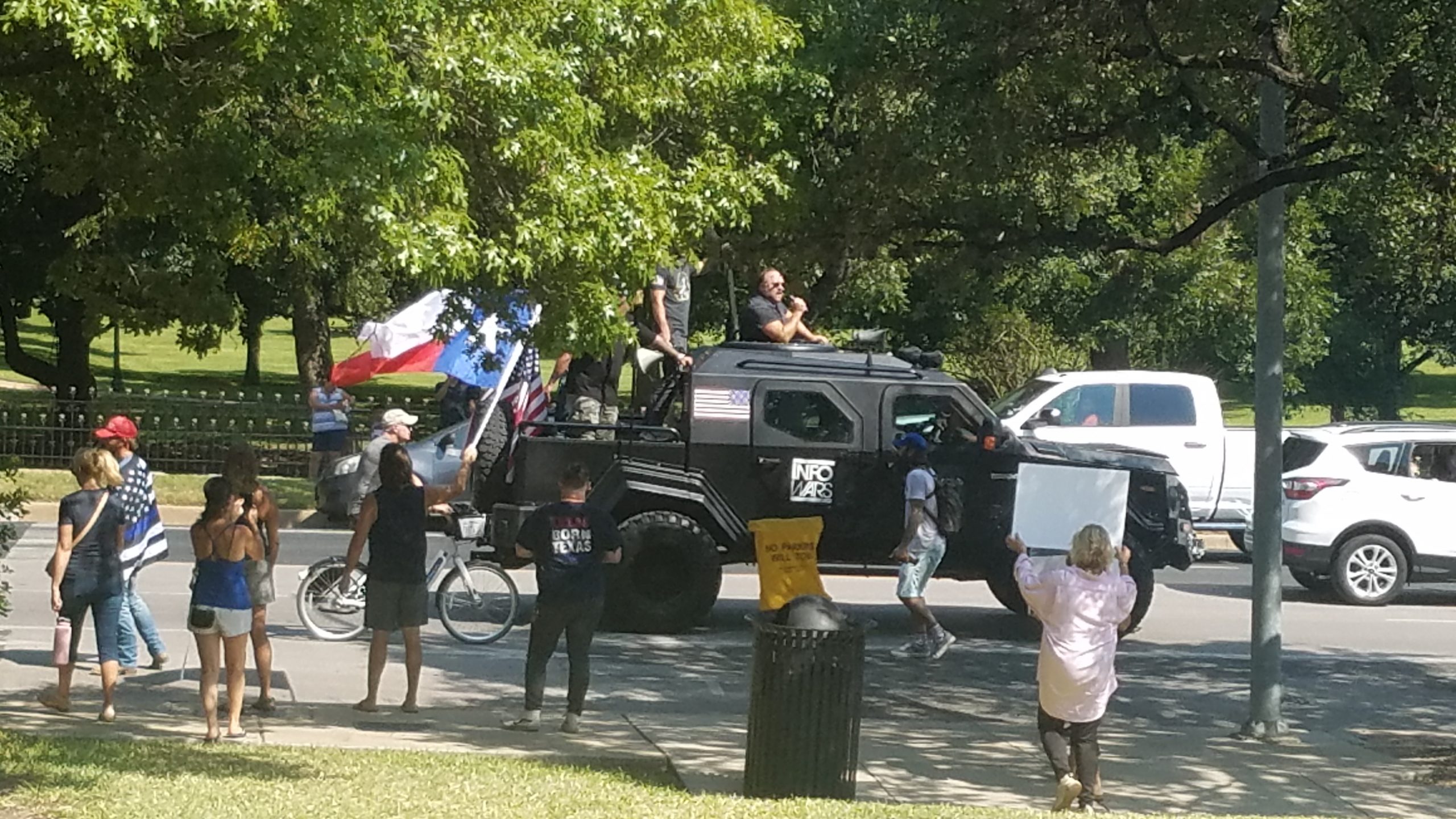 After the Rally concluded Alex Jones showed up in his trademark Infowars Bearcat and dropped off “Warroom” host Owen Shroyer, complete with Megaphone to address the remaining crowd. Jones even bullhorned insults at Morrow from his Bearcat.