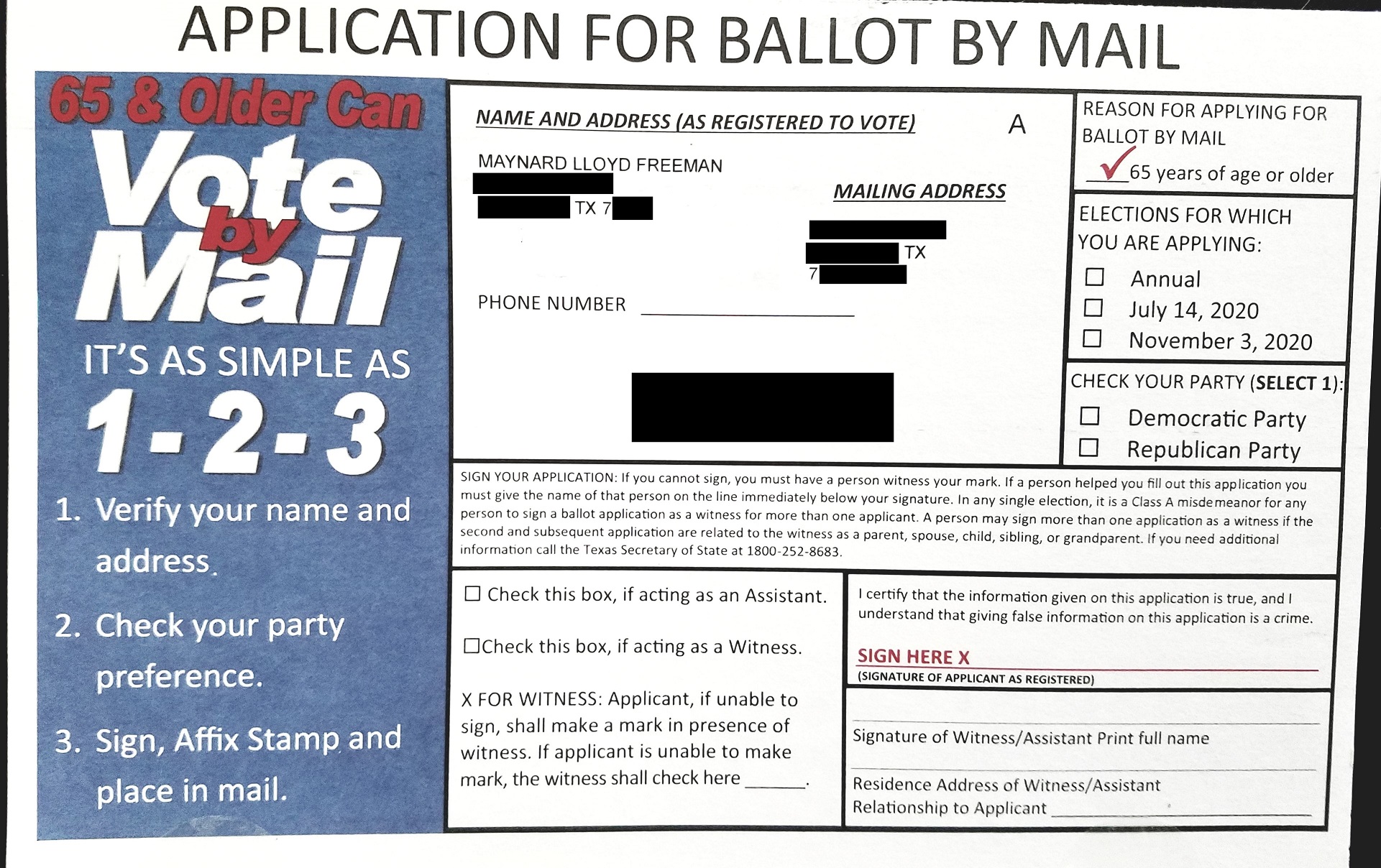 This author brought situation regarding his late father Dr. Maynard Freeman, who has been deceased since 2009, receiving multiple mail in ballot applications (see below).