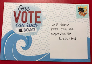 The wayward postcard, discovered this week in a North Austin post office box without a postmark or stamp cancellation, urges a vote in the Georgia U.S. Senate runoff for Democrats Jon Ossoff and Rev. Raphael Warnock. Ossoff and Warnock are opposed by incumbent Republicans David Perdue and Kelly Loeffler, respectively.