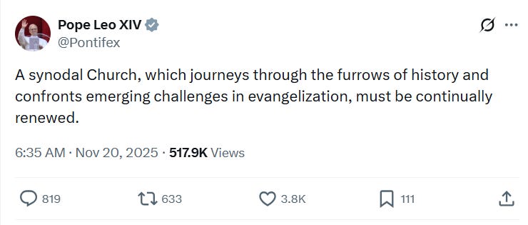 Such “renewal” and “novelty” lauded by Modernists and warned about by the likes of Pope Celestine feels necessary to the mob only when disorder and negligence have long taken over. In the absence of God’s commanded order, novelty provides a false stabilization to the chaos, just long enough for it to spread. In the name of liberty—remember Gregory is writing on the heels of the French Revolution—everyone gets an opinion, everyone can “speak his truth,” everyone can “do you.” Indeed, Gregory’s words traverse the centuries and speak directly to Leo’s tweet: