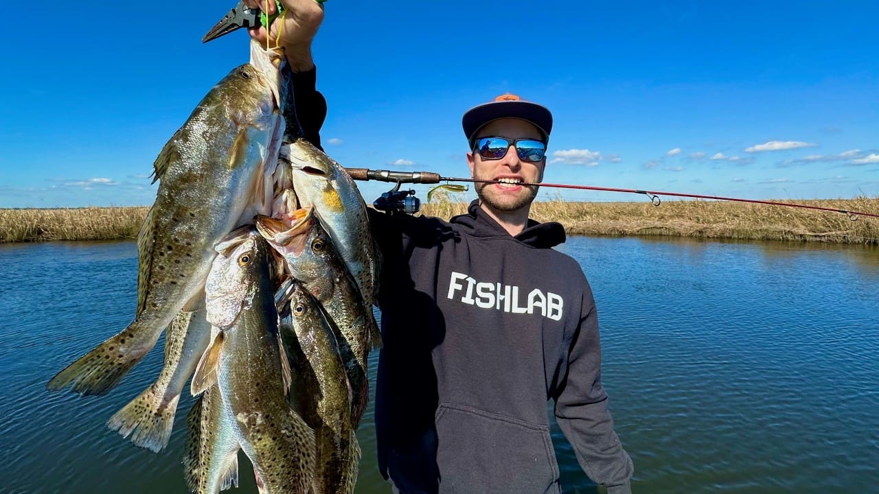MARSH MAN MASSON: Two Hours WHACKING Speckled Trout in the Marsh!