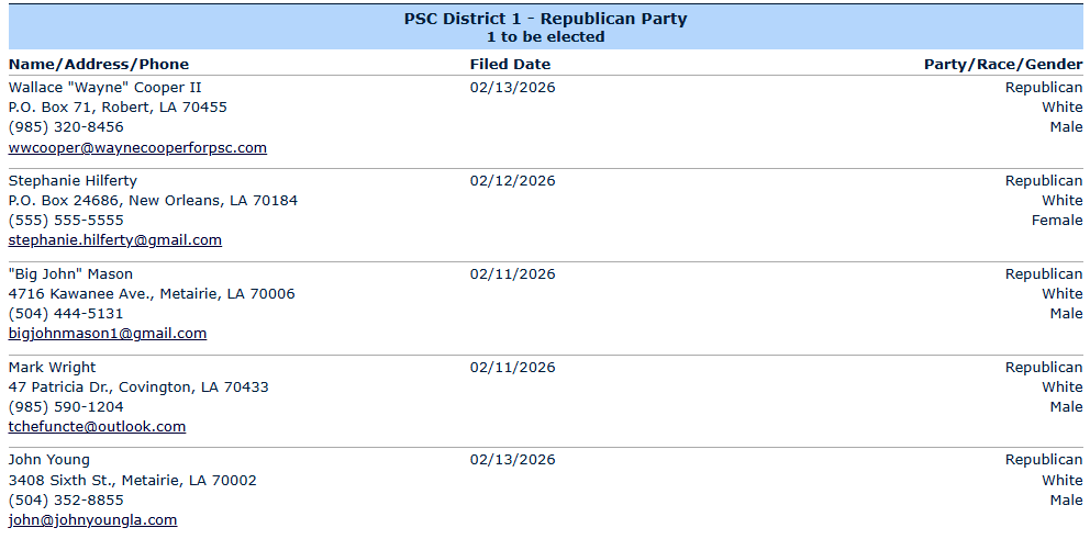 Wayne Cooper, a businessman from Tangipahoa Parish and John Mason, an attorney who ran for the seat in 2020 (he managed 13 percent of the vote), are in the race, but most of the attention is likely going to focus on the three current and former officeholders who are running.